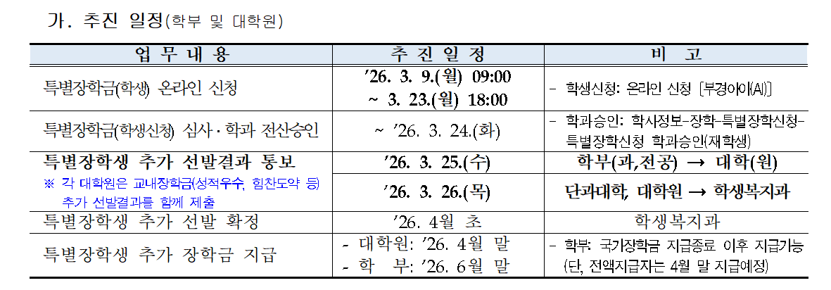 | 26-1학기 교내 저소득층 및 특별장학생 추가 선발계획 안내(학부/대학원) | |||