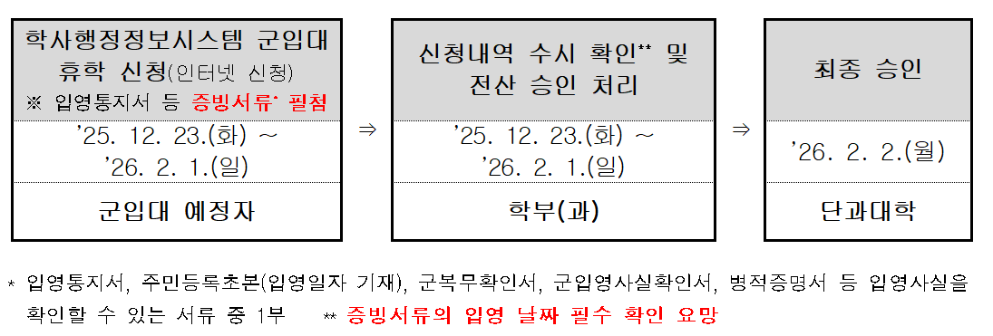 2026학년도 1학기 군입대 휴학바구니(사전휴학) 신청 안내